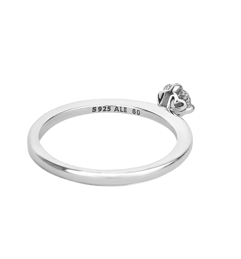 (W) Pandora Clear Heart Solitaire Ring Sterling Silver Clear