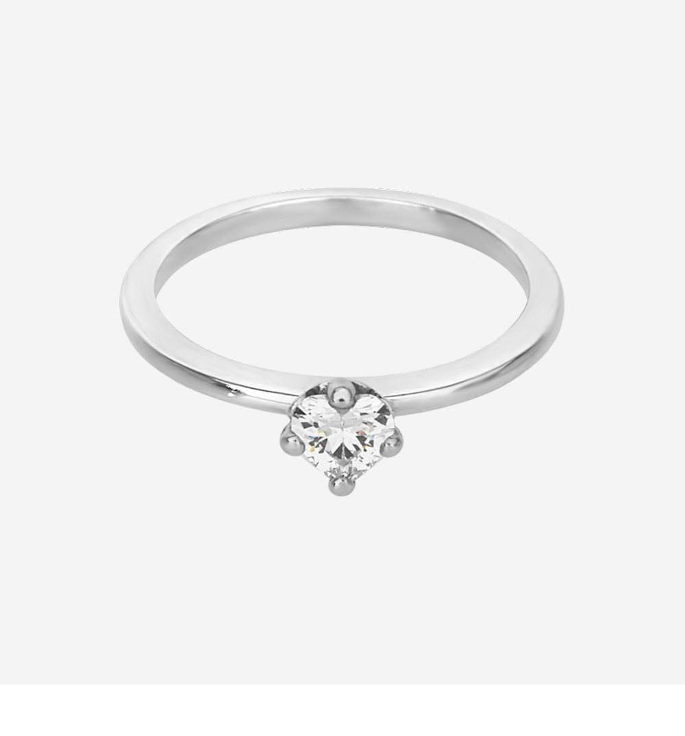 (W) 판도라 클리어 하트 솔리테어 링 스털링 실버 클리어