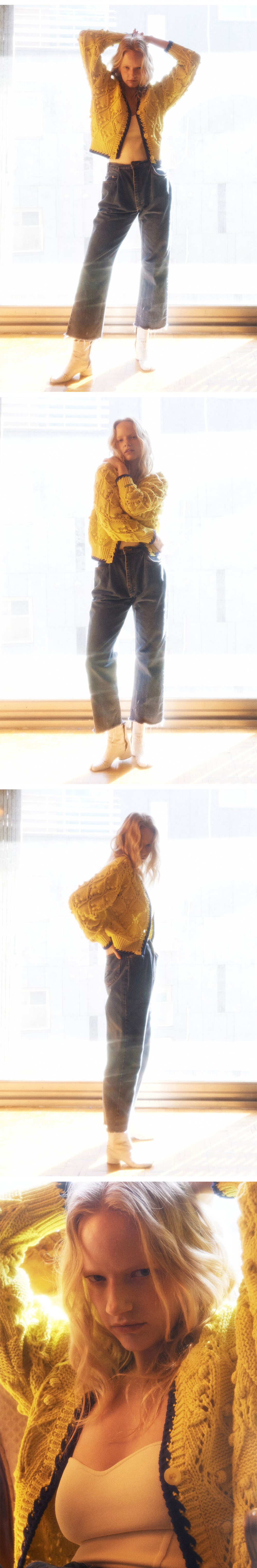 그린 버터 우먼 폼 멜로우 코튼 린넨 가디건 옐로우