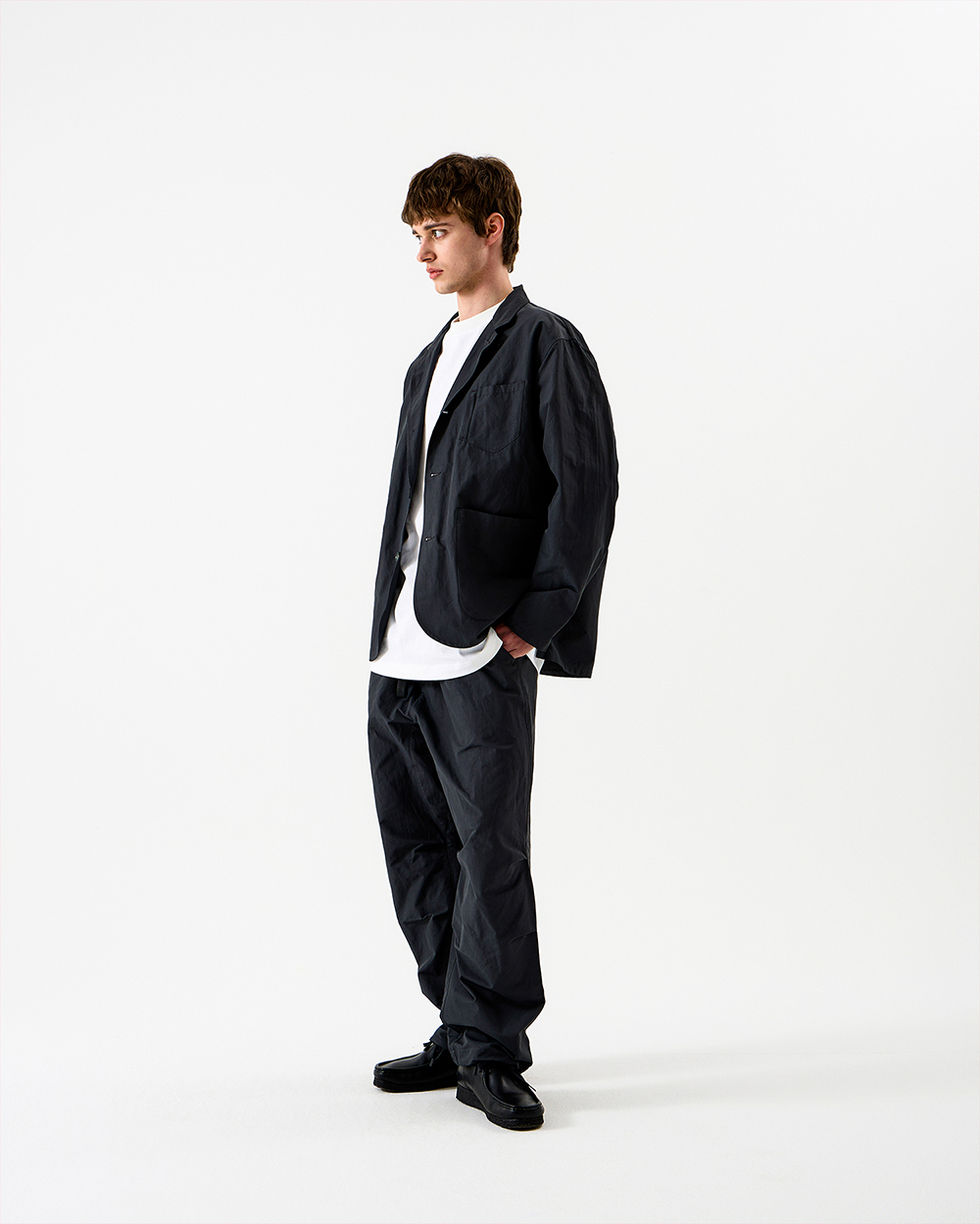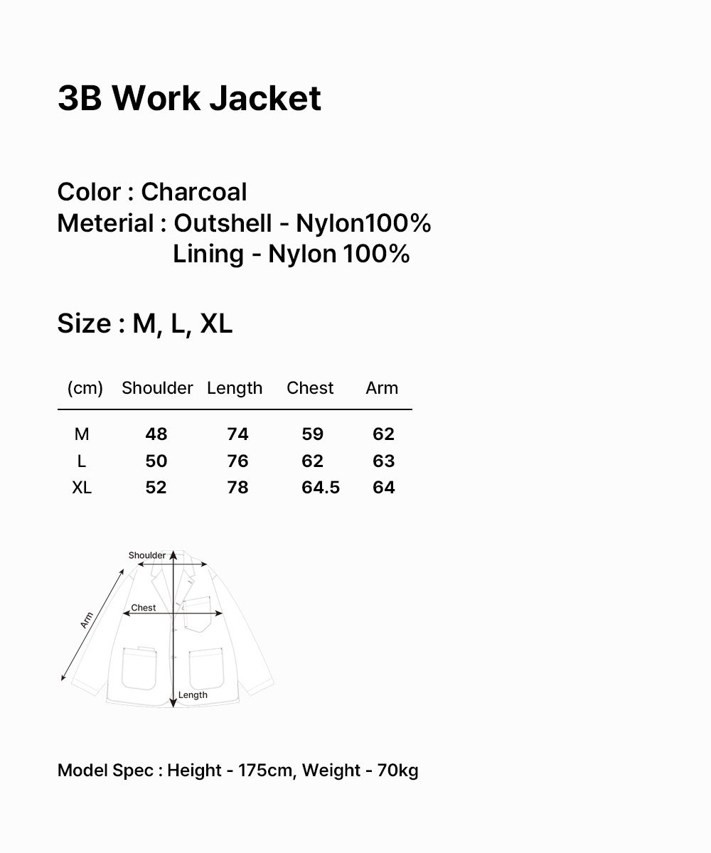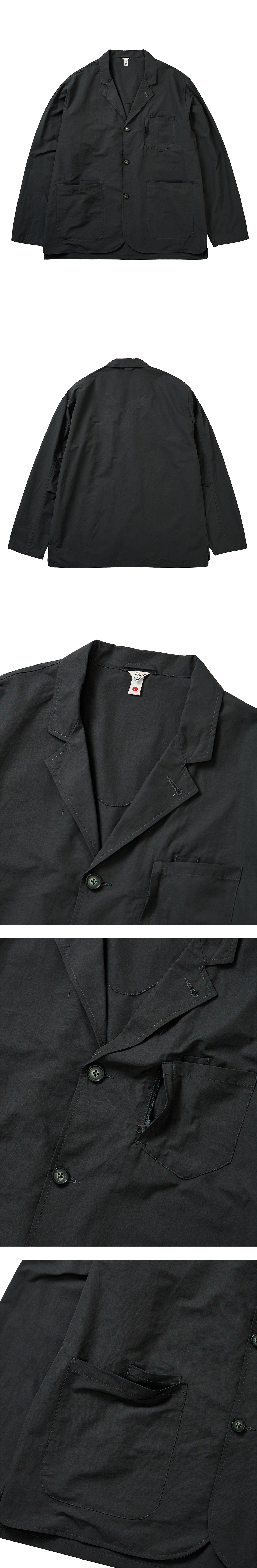 3버튼 여밈과 노치드 라펠, 포멀하게 떨어지는 어깨 라인 코튼, 나일론 혼방 소재로 내추럴한 촉감과 높은 내구성 구현 아웃 포켓과 내부 웰트 포켓으로 다양한 환경에서의 폭넓은 활용성 제공 옆트임 디자인으로 자유로운 움직임과 편안한 착용감 제공 취향에 맞게 다양한 이너와 레이어드 스타일링 용이