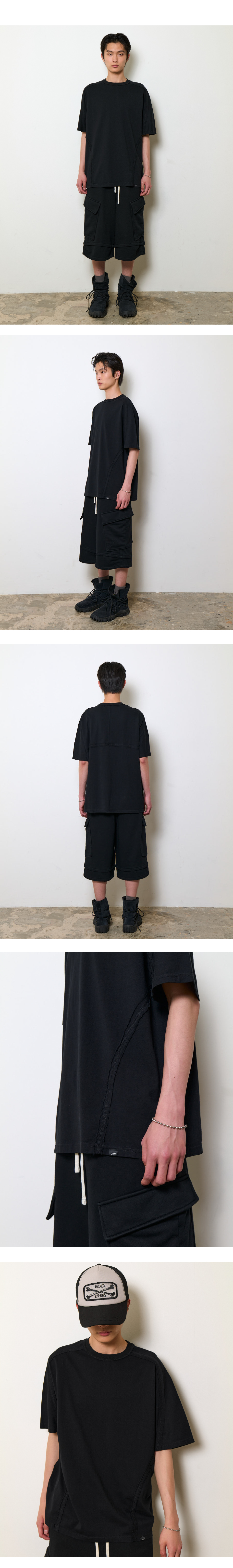 이티씨이 워시드 컷-아웃 오버사이즈 티 블랙
