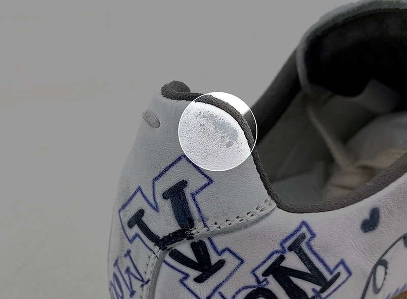 빈티지 워싱 가공으로 인한 소재 까짐, 벗겨짐이 다수 존재.