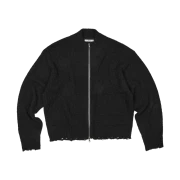 이티씨이 데미지 크롭 네트 니트 집업 블랙