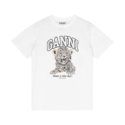 T4124-943 (W) Ganni Basic Jersey Leopard Relaxed T-Shirt White