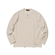 OGARP Waffle Henley Neck Long Sleeve Oatmeal