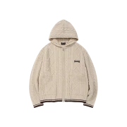트레셔 플레임 케이블 니트 후드집업 아이보리