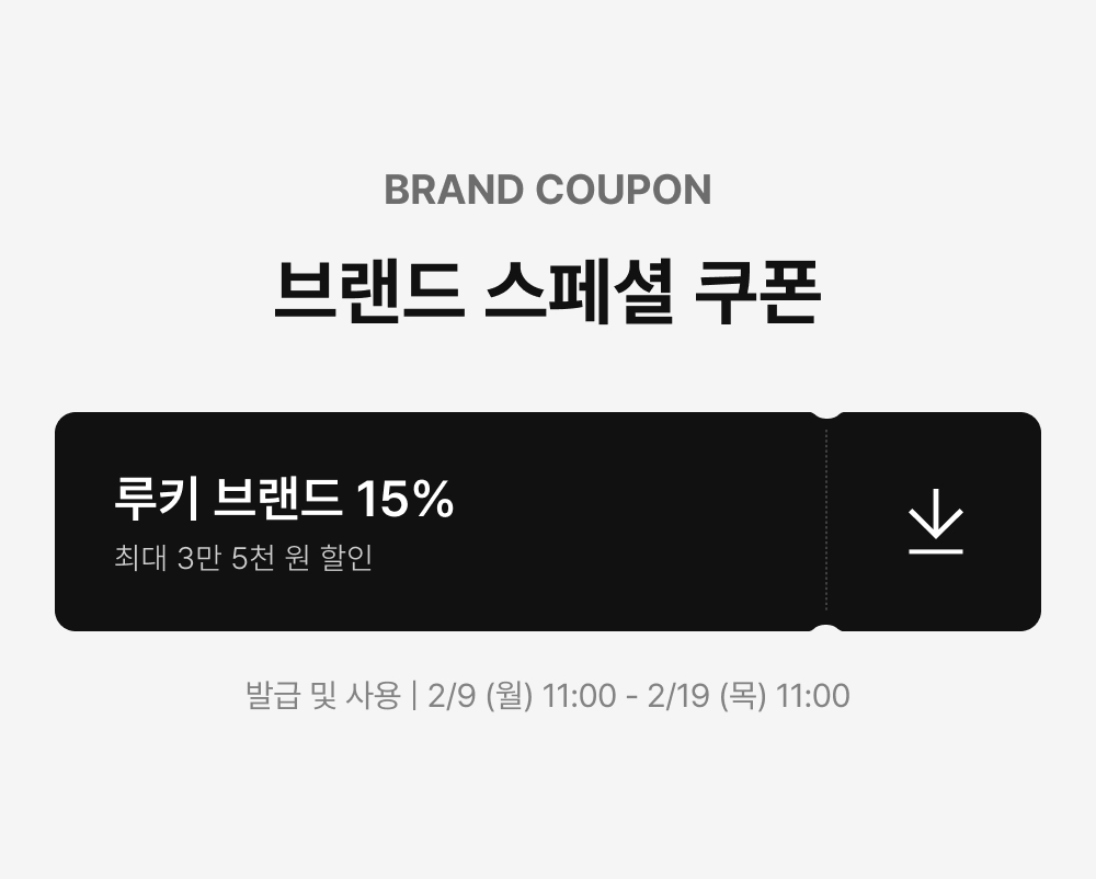 본 이벤트는 기획전 기간 내 (2/9 (월) 11:00~ 2/19 (목) 11:00) 새롭게 브랜드를 ‘관심 저장’한 고객에 한하여 참여 가능합니다.