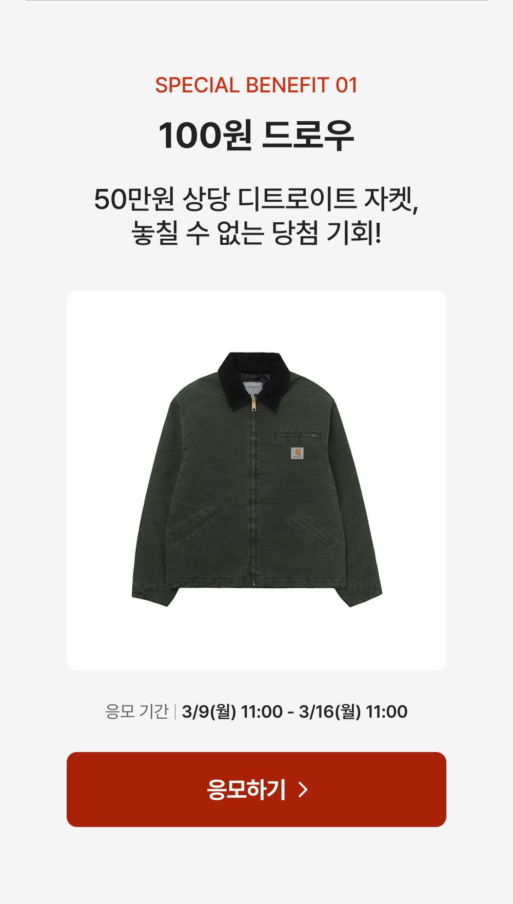 본 쿠폰은 칼하트, 칼하트WIP 상품에 한하여 사용 가능하며, 일부 상품은 쿠폰 사용이 불가할 수 있습니다.