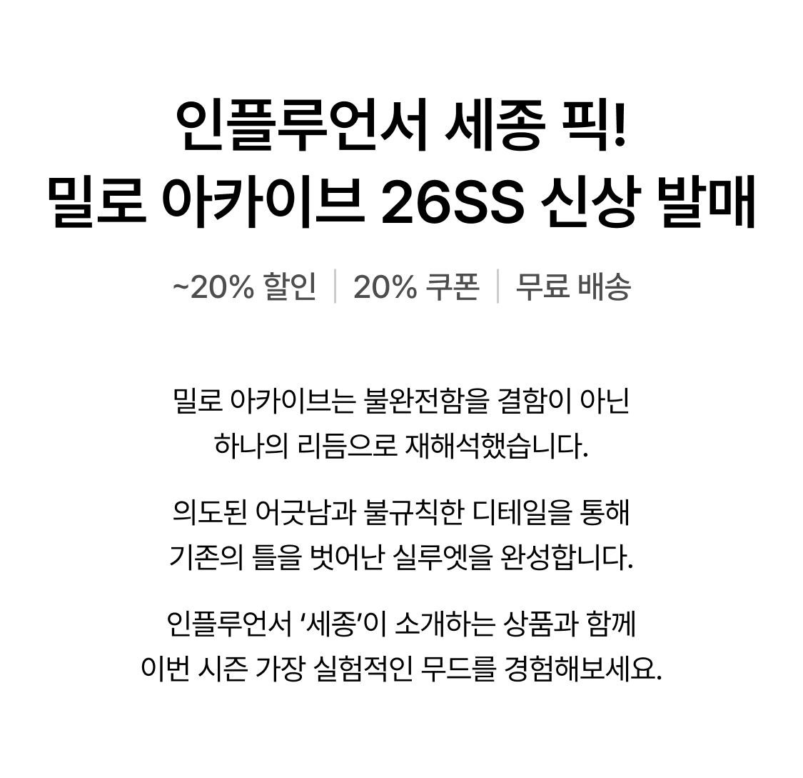 본 쿠폰은 밀로아카이브 상품에 한해 적용 가능하며, 일부 상품은 적용 불가합니다.