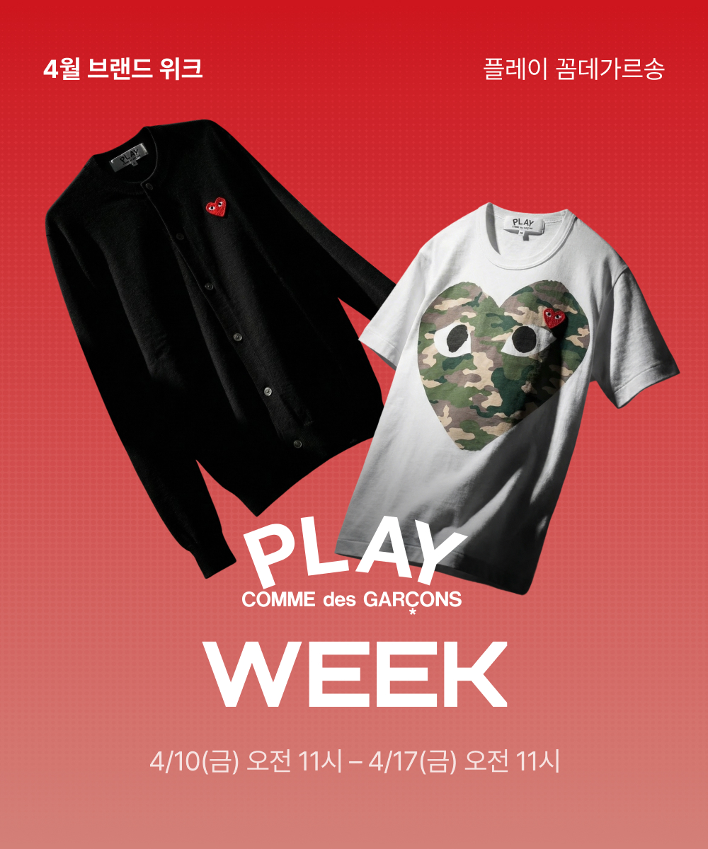 본 쿠폰은 ‘플레이 꼼데가르송(Play Comme des Garcons)’상품에 한하여 사용 가능하며, 일부 상품은 쿠폰 사용이 불가할 수 있습니다.