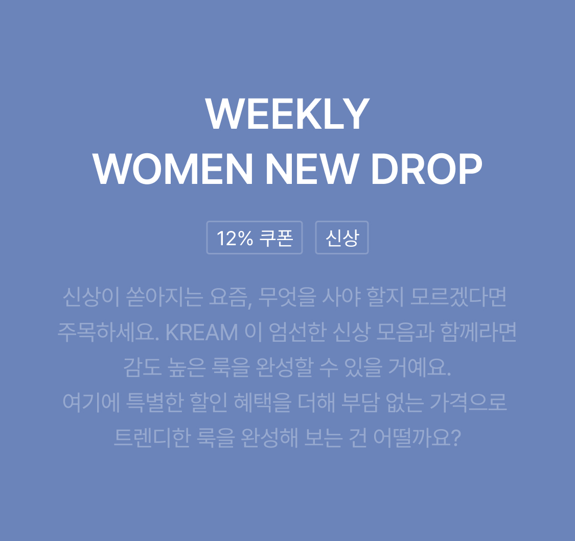 본 쿠폰은 Weekly New Drop 상품에 한해 적용 가능하며, 일부 상품은 적용 불가합니다.