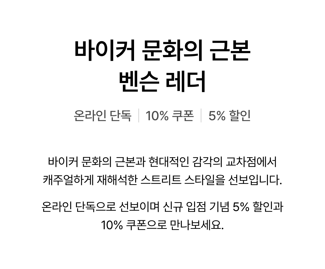본 쿠폰은 벤슨 레더 상품에 한해 적용 가능하며, 일부 상품은 적용 불가합니다.