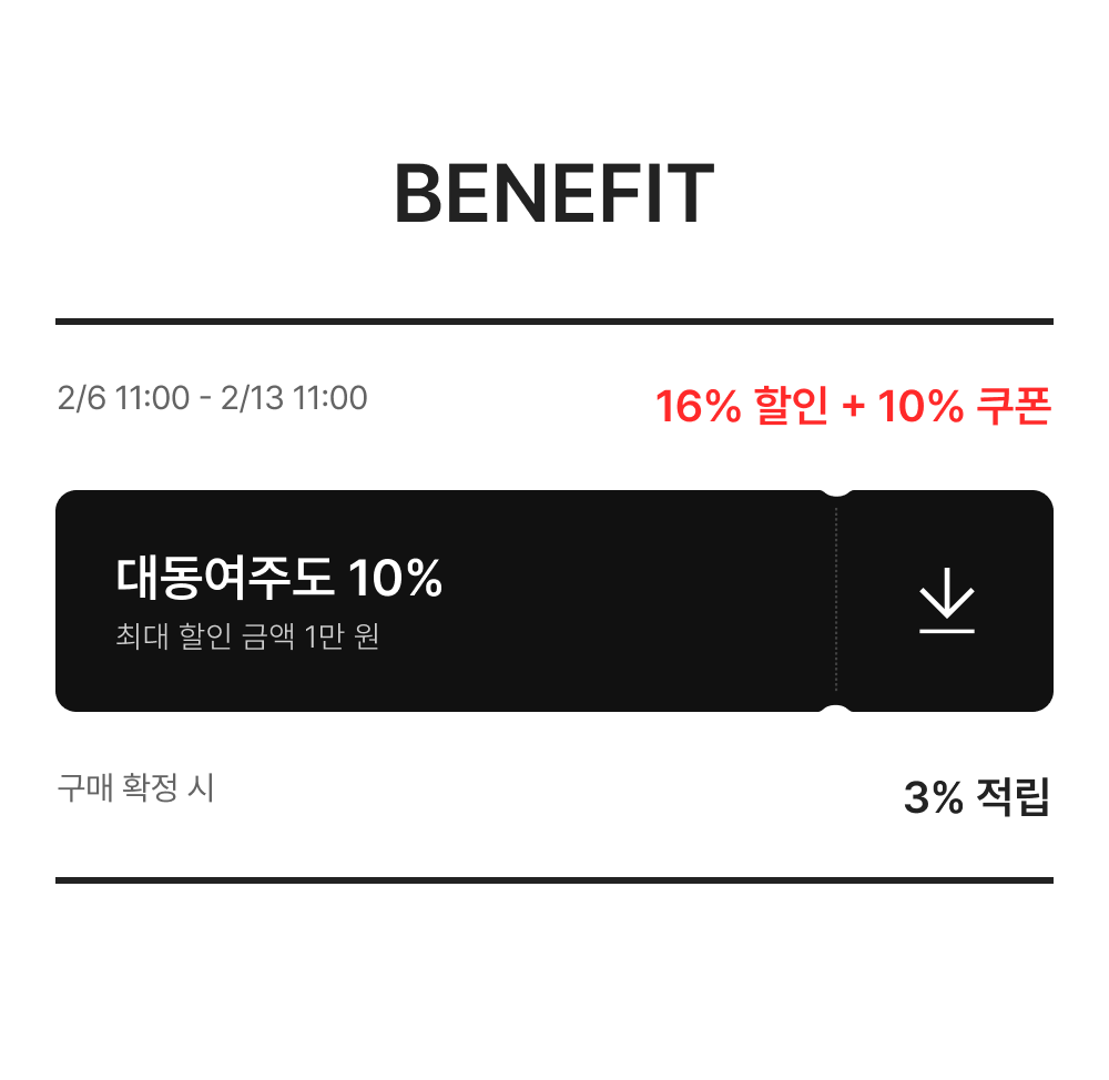 [~26/2/11(수) 오전 11시] ~55% 할인 | 15% 쿠폰