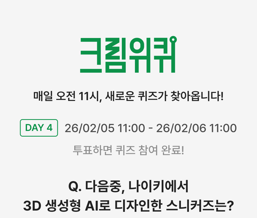 - 퀴즈는 매일 오전 11시 오픈되며, 제출 후 수정이 불가 합니다.