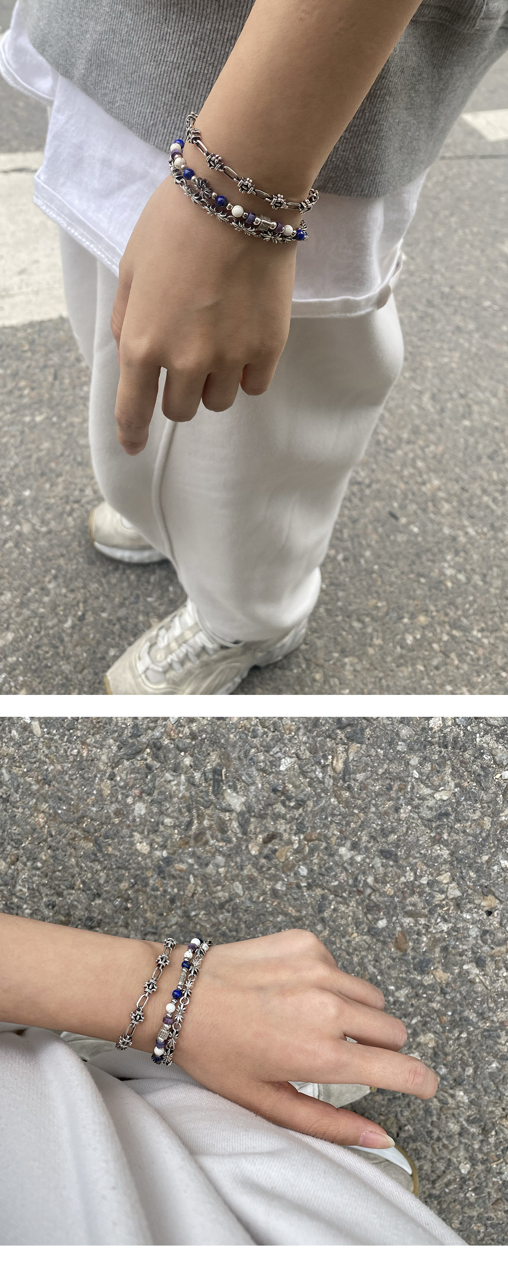 [beads line] 스쿠도 링크와 다양한 무늬의 핸드메이드 카렌실버로 이루어진 비즈 브레슬릿 가든라인 베이트리 링크와 바이올렛 원석 베리에이션으로 이루어진 비즈 브레슬릿 *고산족 카렌실버는 수공예 핸드메이드 실버이기때문에, 같은 디자인이여도 모두 조금씩 다르며, 입고되는 디테일이 동일 할 수 없습니다. 그렇기 때문에, 비슷한 크기의 다른 디테일의 카렌실버 참으로 랜덤 되어 제작될 수 있습니다. *비즈 브레슬릿 특성상 A/S가 불가능 합니다. 스쿠도의 beads bracelet은 맞춤 handcraft 주얼리로, 3일 제작기간이 소요됩니다. (주말 / 공휴일 제외) 추가 제품 상담이 필요하시면, 문의 부탁드립니다.