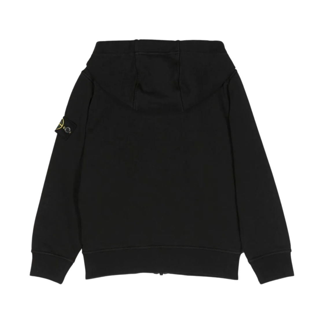 (Kids) Stone Island 60740 Cotton Fleece Full Zip Hooded Sweatshirt Black - 23SS