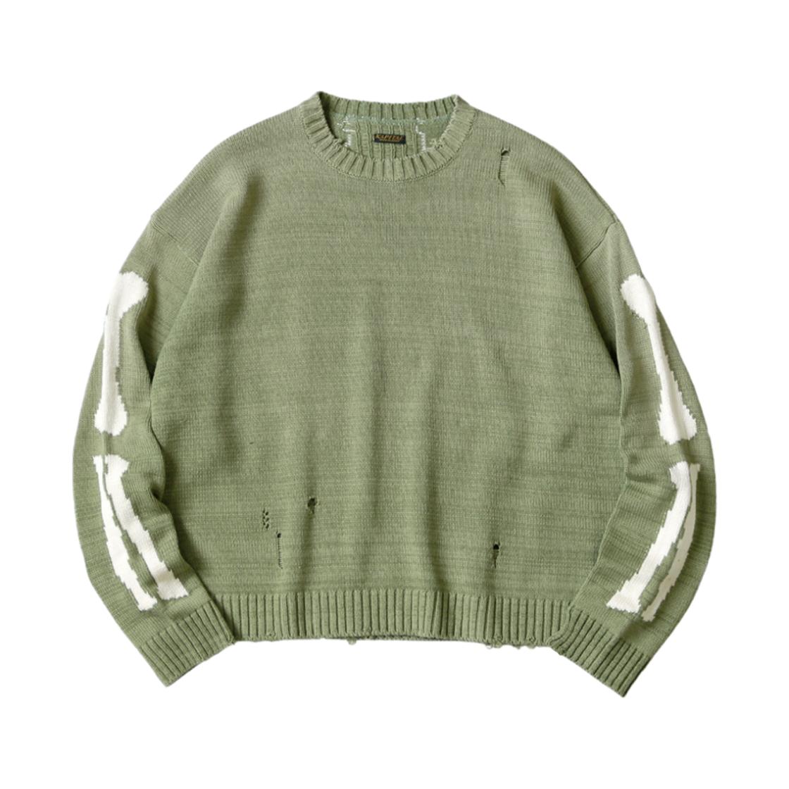 Kapital 5G Cotton Knit Bone Crewneck Sweater Khaki