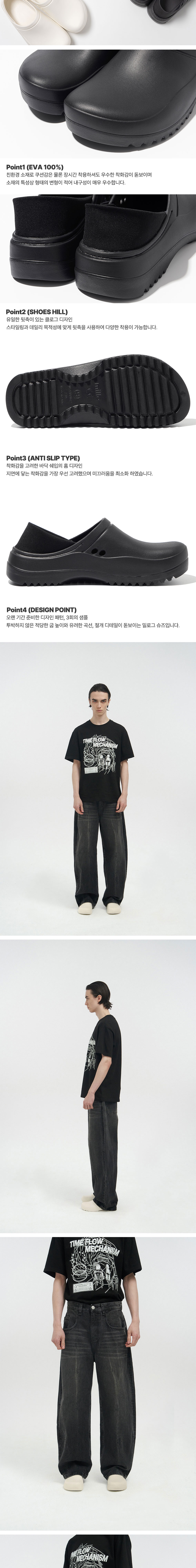 -4회의 디테일 수정 진행 후 금형을 진행한 밀로만의 독자적인 클로그 디자인 -유일한 밴드 디테일로 쉽게 벗겨지지 않는 클로그 -EVA 소재를 사용하여 마모에 강하며 내구성 및 충격 흡수가 매우 우수 -폴리에스터 원단의 립 사용으로 뒷축의 복원성과 탄성력이 좋음 -다양한 코디 매칭과 스타일링 확장을 위해 신규 컬러 추가 출시 -310g의 매우 가벼운 무게, 전체적으로 여유 있는 발 볼 사이즈 -사이즈 별 5mm 크게 제작하여 정 사이즈 추천 (뒷축을 활용해 구겨신는 고객님의 경우 1업 추천) -모델 스펙 남자 (에릭) 186cm/ 65kg 피팅 사이즈 280 여자 (엔젤) 176cm / 50kg 피팅 사이즈 260
