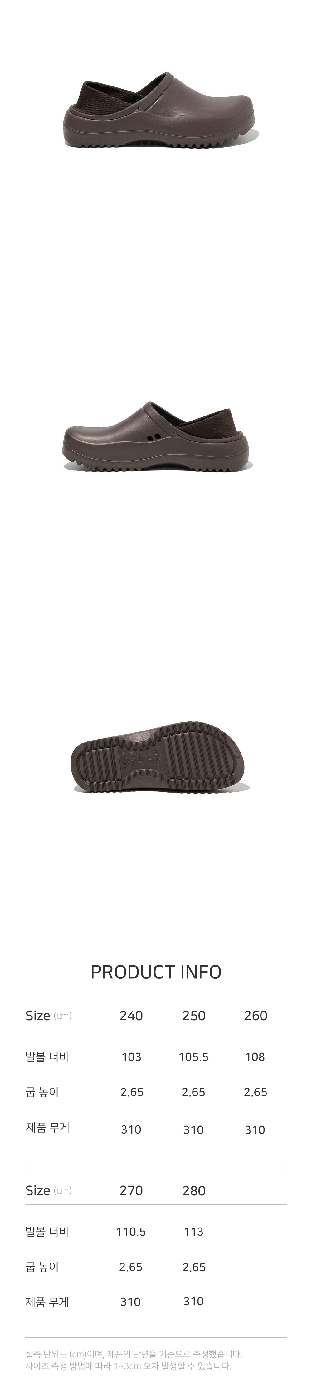 -4회의 디테일 수정 진행 후 금형을 진행한 밀로만의 독자적인 클로그 디자인 -유일한 밴드 디테일로 쉽게 벗겨지지 않는 클로그 -EVA 소재를 사용하여 마모에 강하며 내구성 및 충격 흡수가 매우 우수 -폴리에스터 원단의 립 사용으로 뒷축의 복원성과 탄성력이 좋음 -다양한 코디 매칭과 스타일링 확장을 위해 신규 컬러 추가 출시 -310g의 매우 가벼운 무게, 전체적으로 여유 있는 발 볼 사이즈 -사이즈 별 5mm 크게 제작하여 정 사이즈 추천 (뒷축을 활용해 구겨신는 고객님의 경우 1업 추천) -모델 스펙 남자 (에릭) 186cm/ 65kg 피팅 사이즈 280 여자 (엔젤) 176cm / 50kg 피팅 사이즈 260