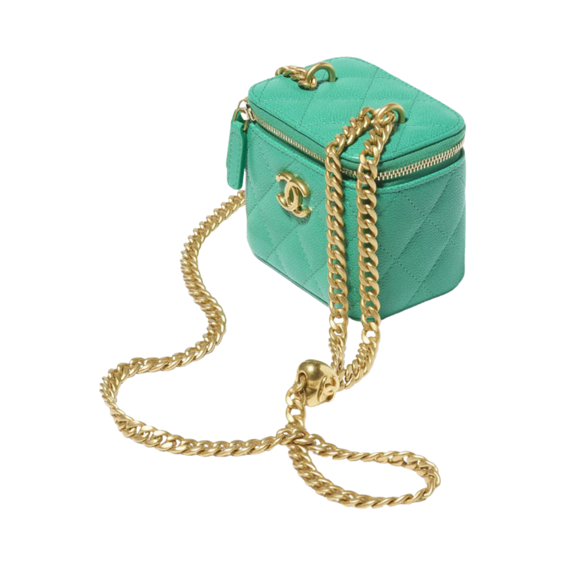 샤넬 체인 달린 미니백 그레인드 카프스킨 & 골드 메탈 그린