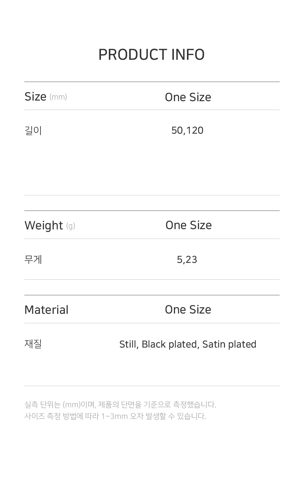 측정 방법에 따라 사이즈에 일부 오차가 있을 수 있습니다.