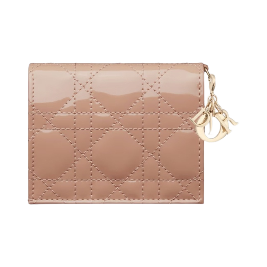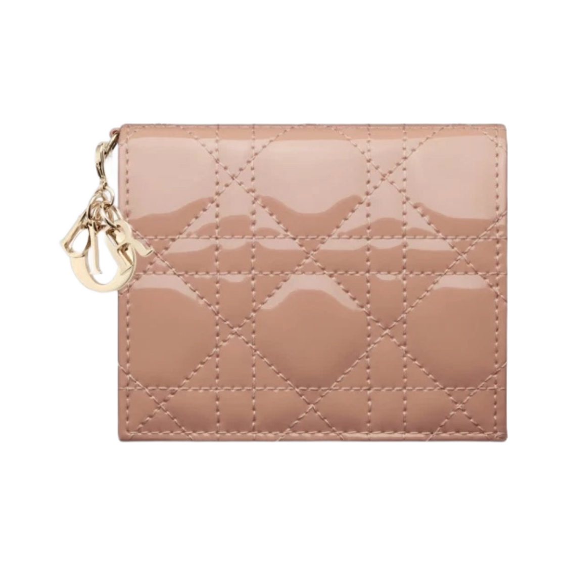 Dior Mini Lady Wallet Patent Cannage Calfskin Rose Des Vents