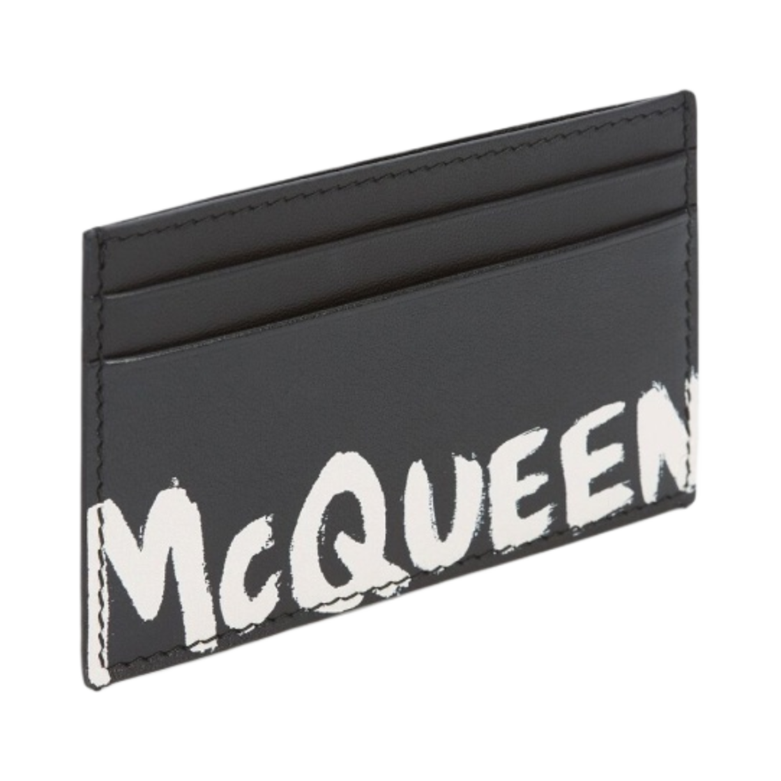 알렉산더 맥퀸 그래피티 카드 홀더 카프스킨 블랙