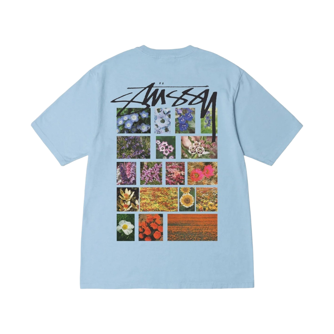 스투시 플라워 그리드 피그먼트 다이드 티셔츠 스카이 블루