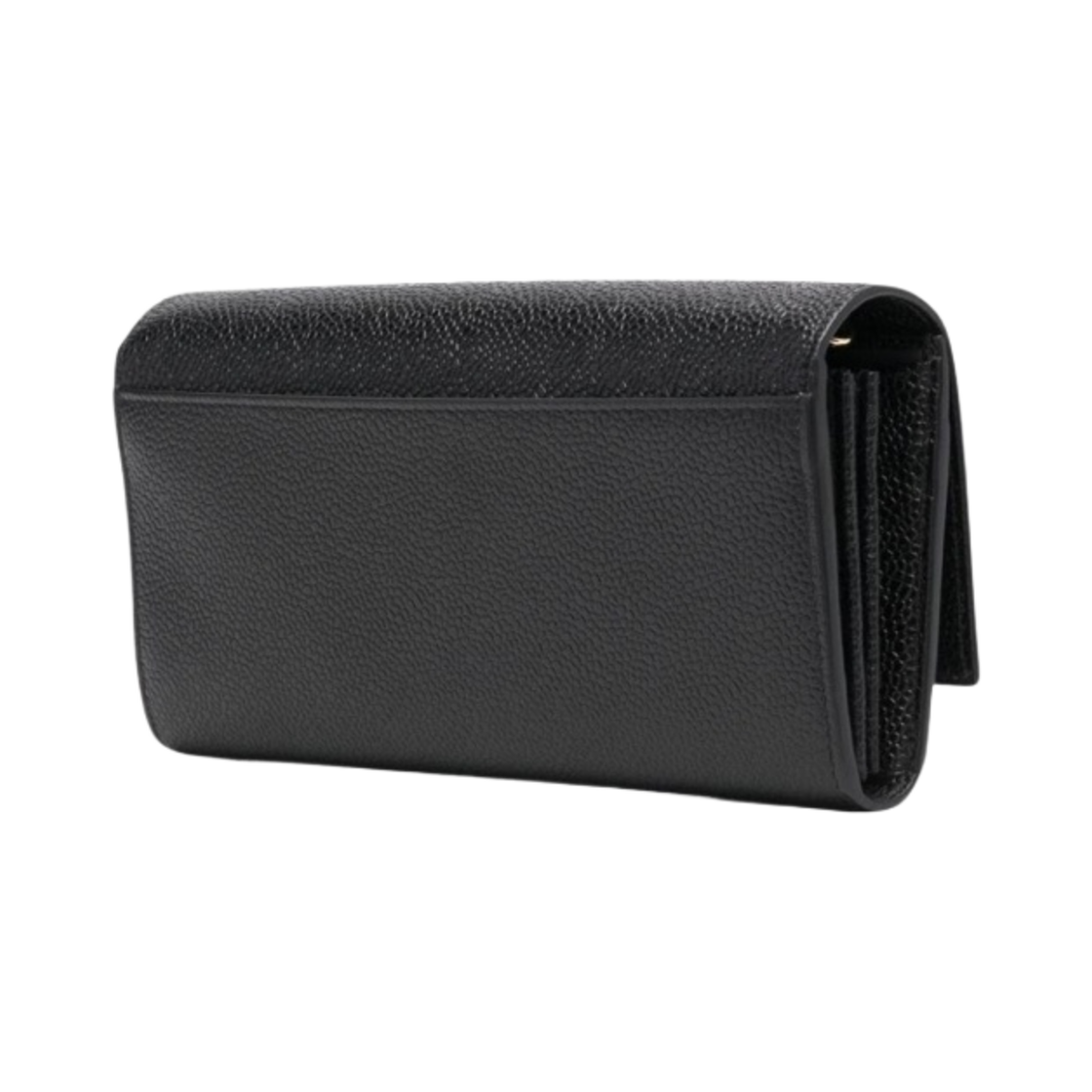Thom Browne Pebble Grain Leather Wide RWB Grosgrain Flap Wallet on Chain Black