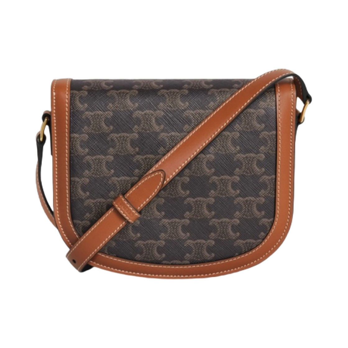 Celine Besace Clea in Triomphe Canvas Calfskin Tan