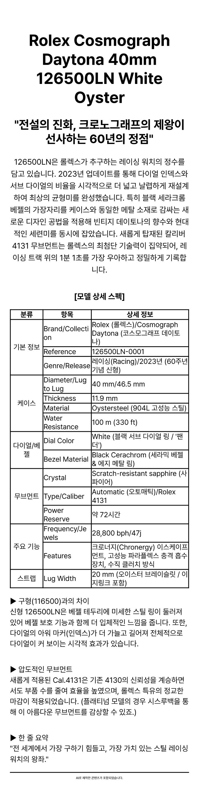 롤렉스 코스모그래프 데이토나 40mm 126500LN 화이트 오이스터