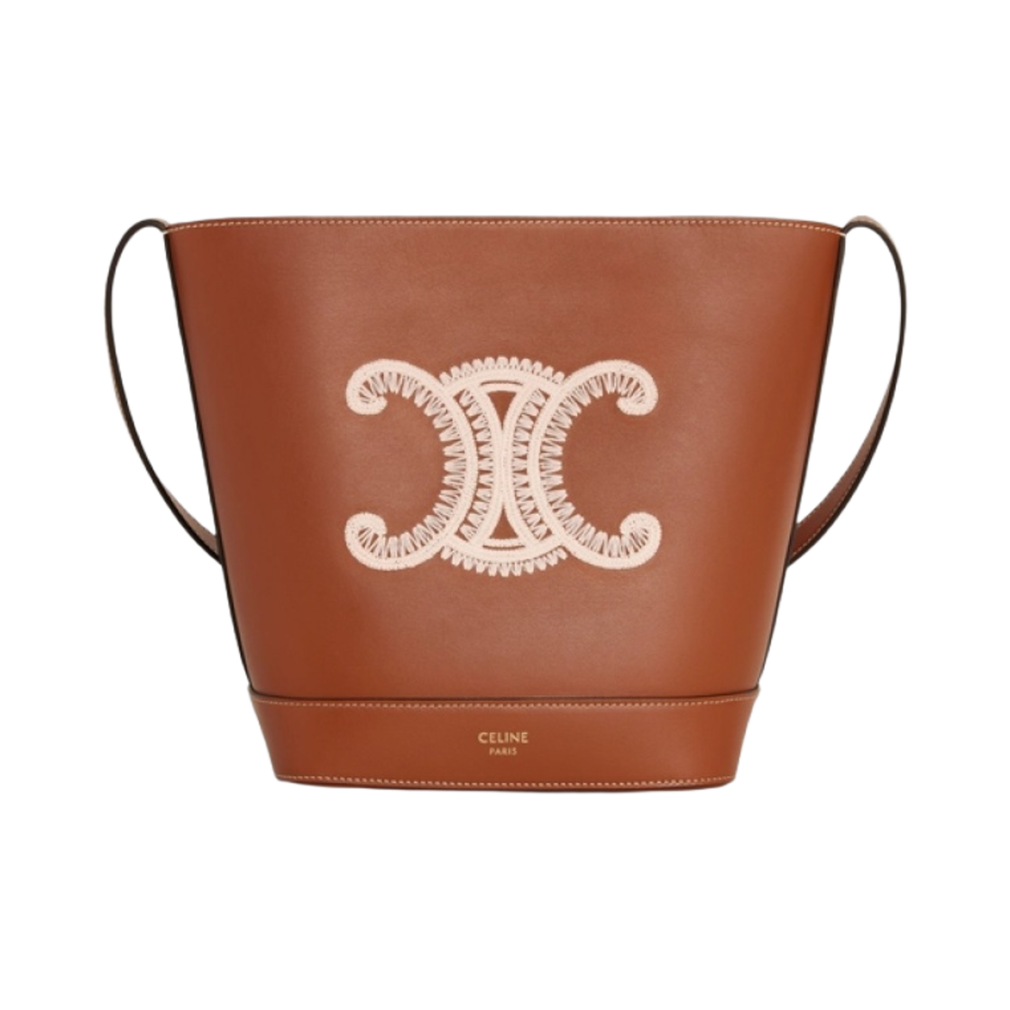Celine Small Bucket Cuir Triomphe in Smooth Calfskin with Triomphe Embroidery Tan