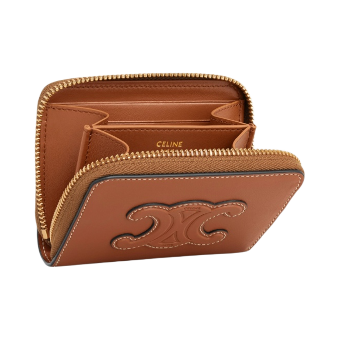 Celine Compact Zipped Wallet Cuir Triomphe in Smooth Calfskin Tan