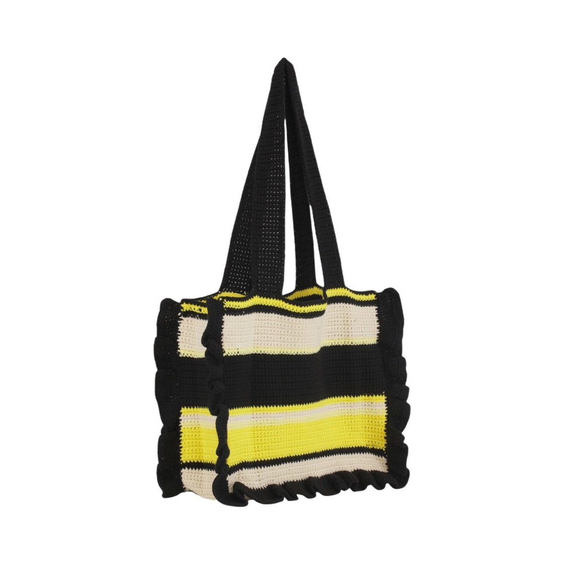 Ganni Crochet Frill Tote Solid Bag Golden Kiwi