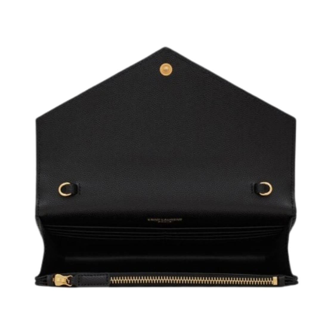 Saint Laurent Cassandre Matelasse Envelope Chain Wallet in Grain De Poudre Embossed Leather Black