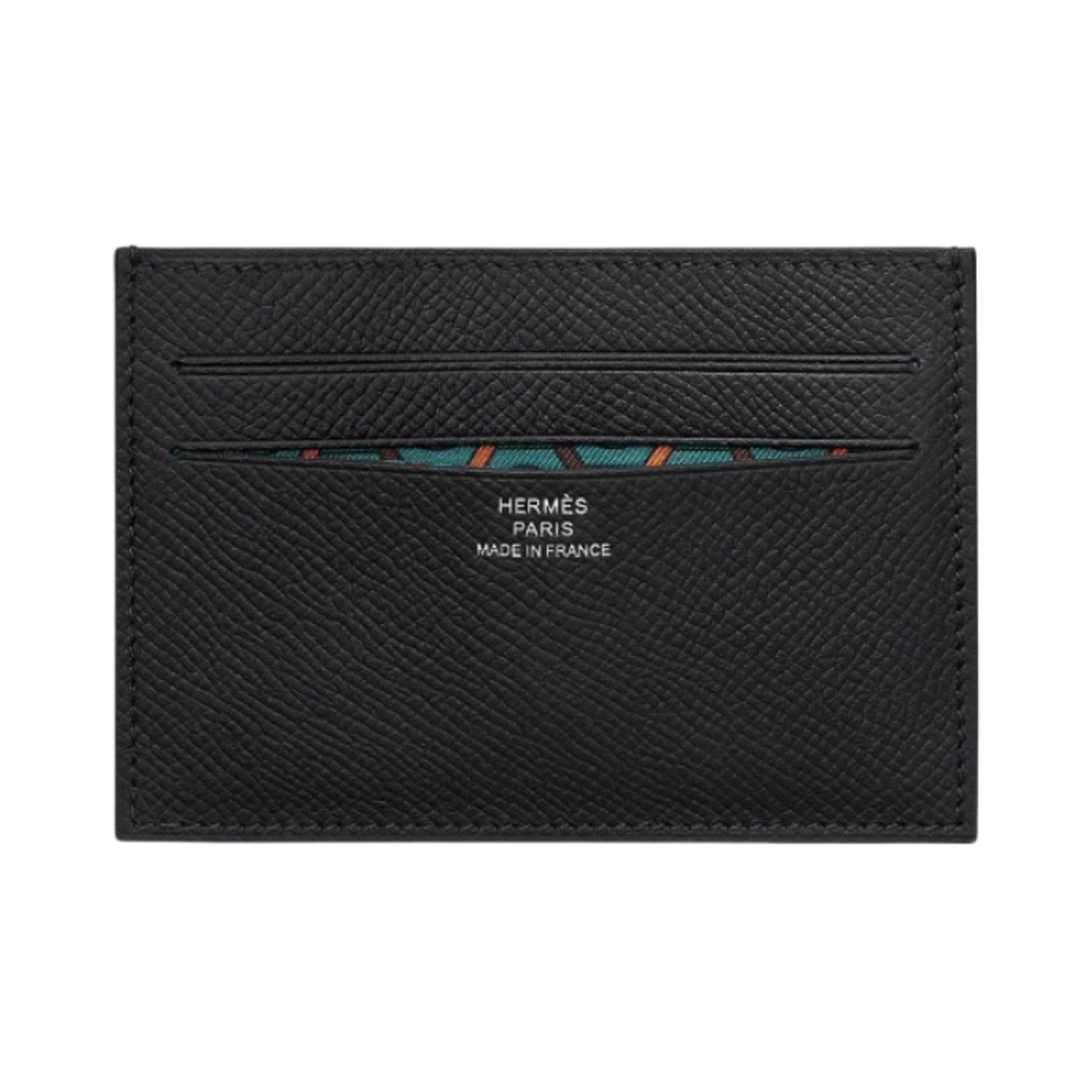 Hermes Citizen Twill Card Holder Epsom & Noir Deep Blue Vert Bosphoru