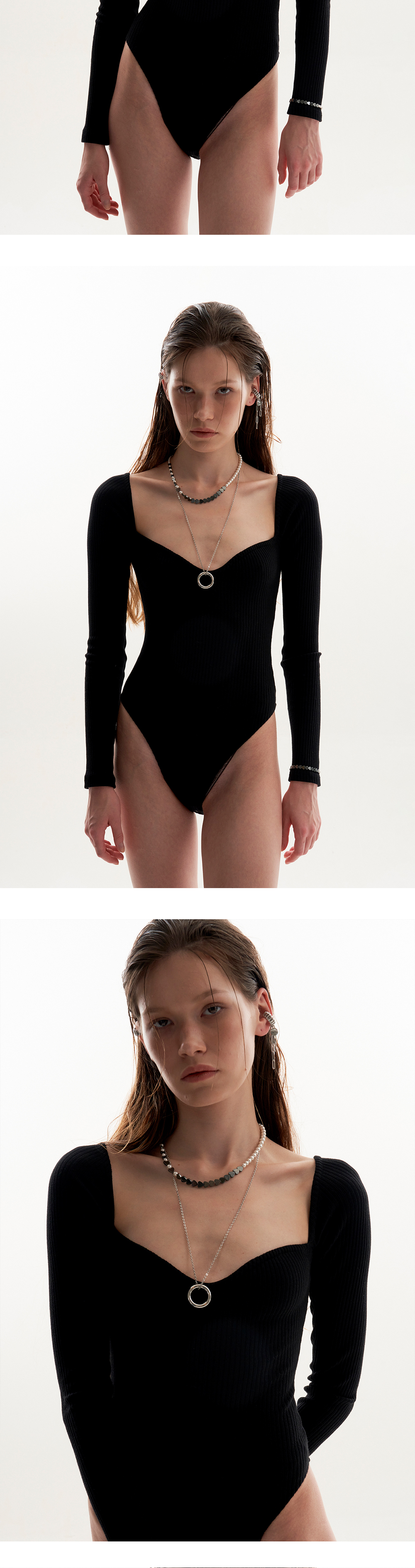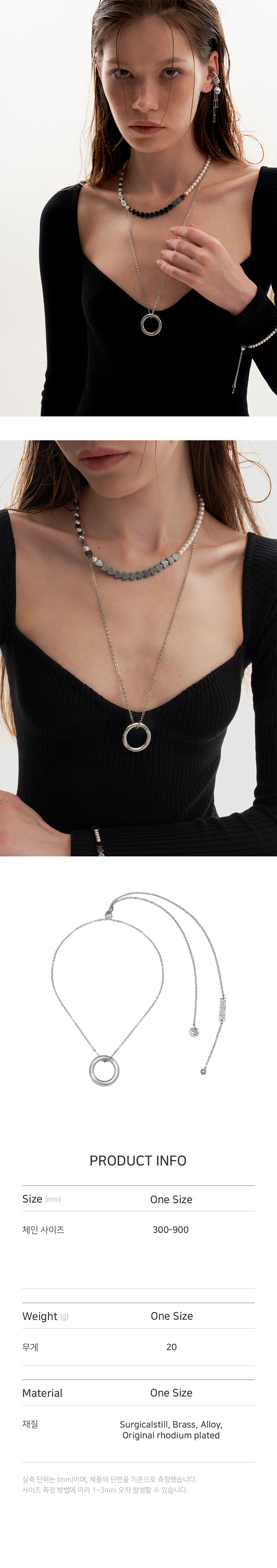 체인 뒤쪽에 위치한 볼 펜던트를 이용하여 최대 90cm까지 자유로운 길이조절이 가능합니다.