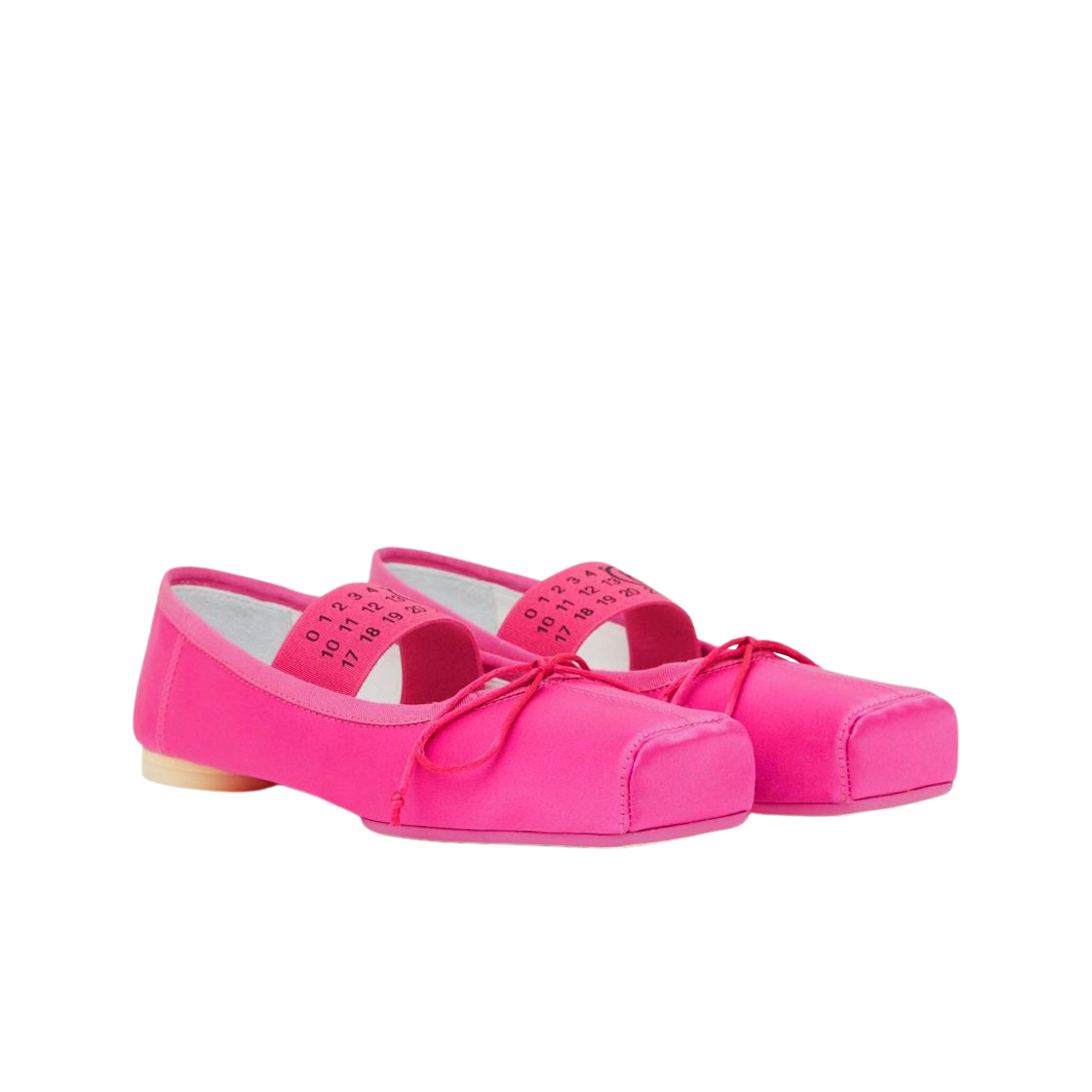 (W) MM6 메종 마르지엘라 뉴메릭 로고 스트랩 발레리나 플랫 슈즈 푸시아 핑크