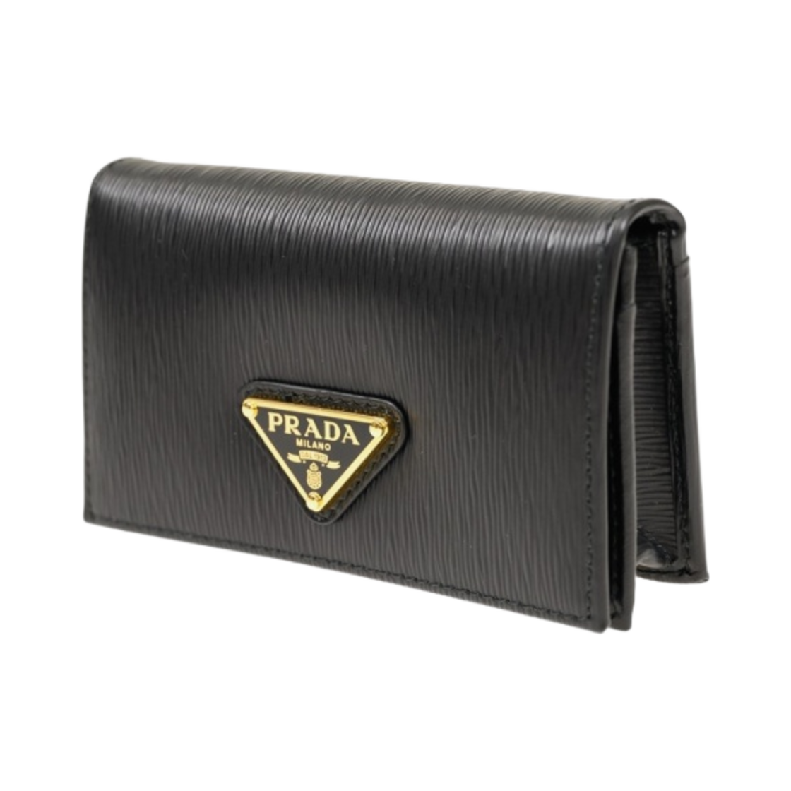 프라다 비텔로 트라이앵글 로고 플랩 카드 홀더 블랙