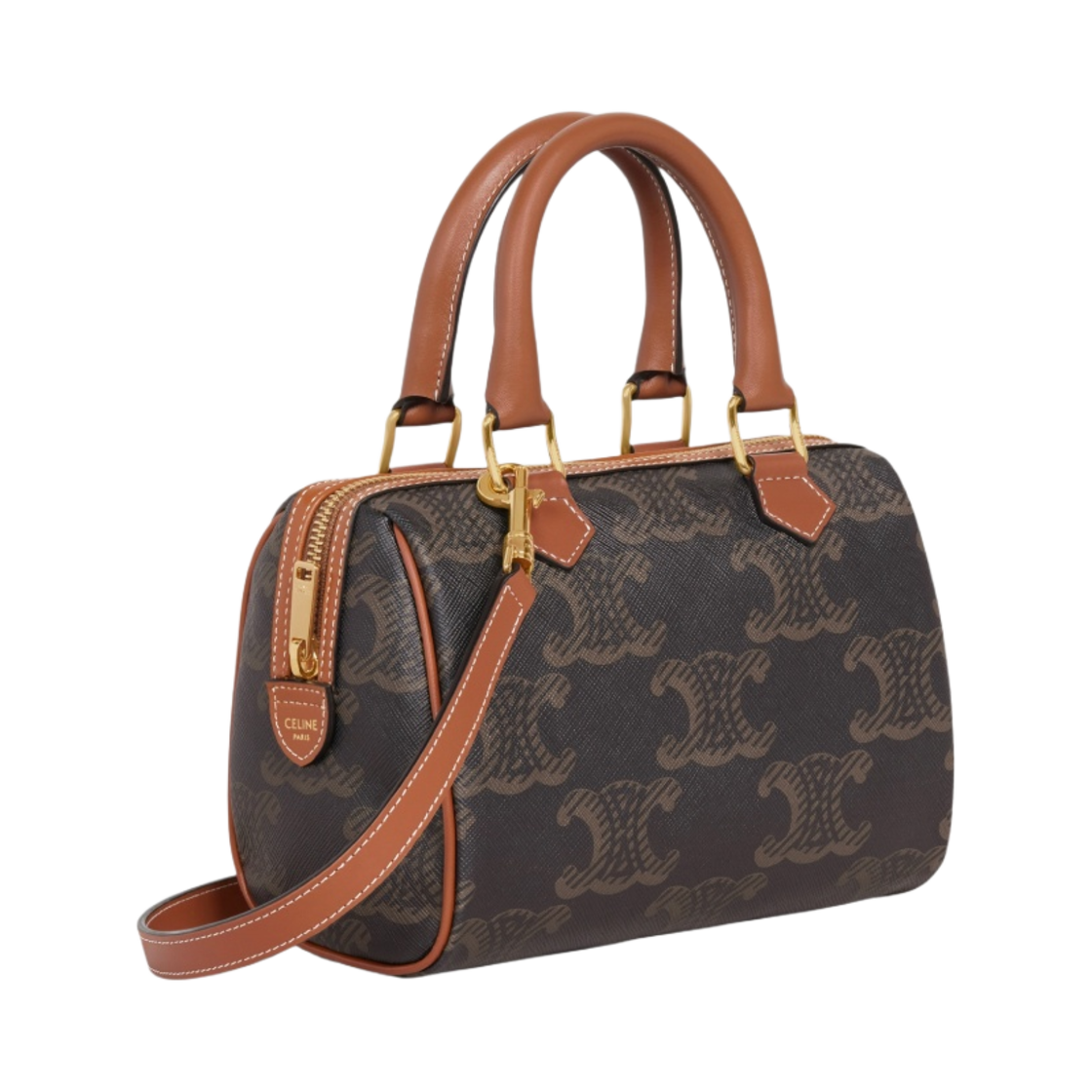 Celine Small Boston in Triomphe Canvas XL and Calfskin Tan