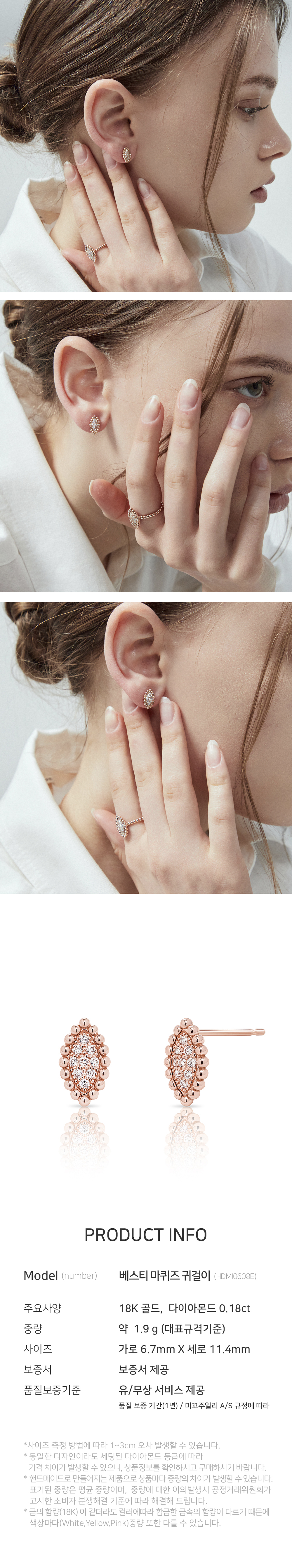 미꼬 우먼 베스티 마퀴즈 다이아몬드 이어링 핑크 골드