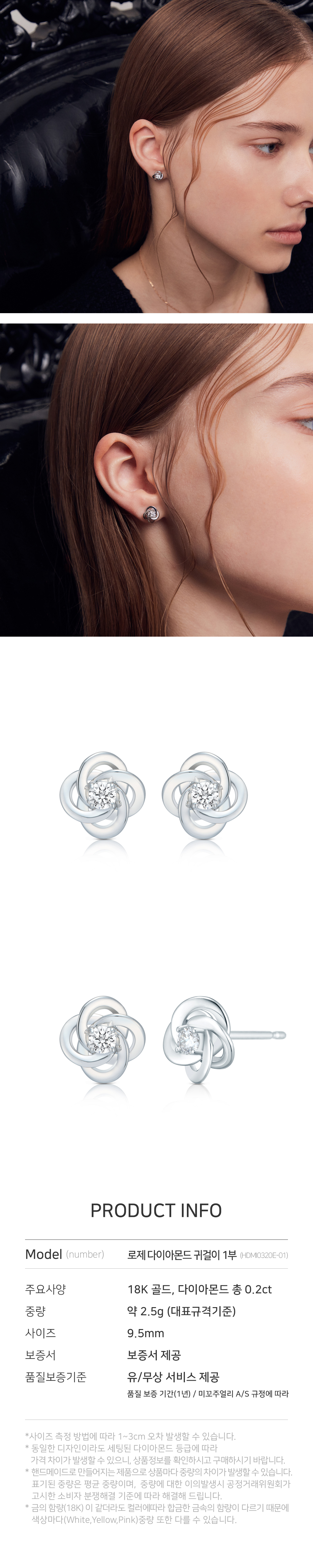 미꼬 우먼 로제 0.1 캐럿 다이아몬드 이어링 화이트 골드