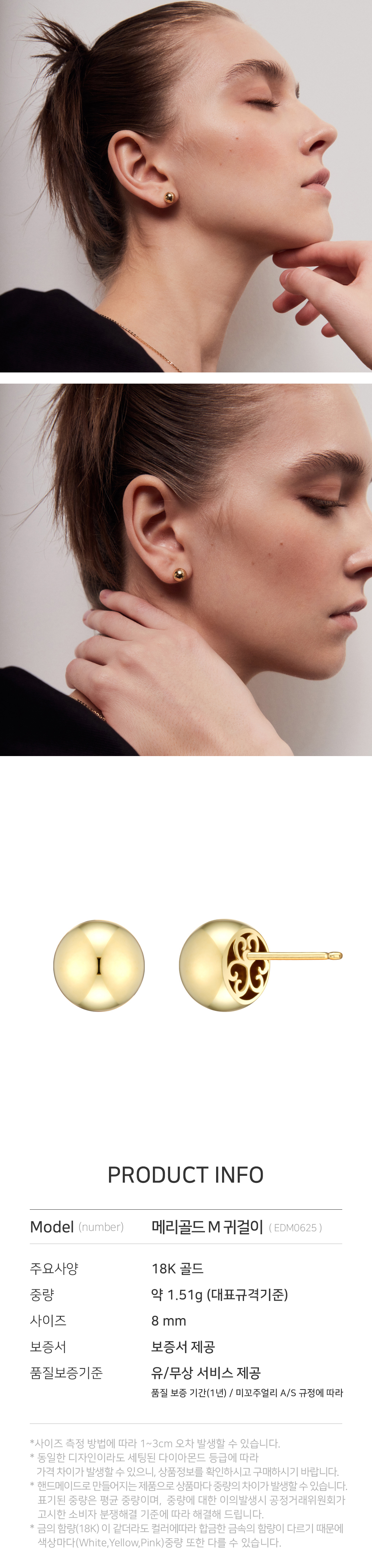 해당 상품 구입시 제작 및 출고에 영업일 기준 최대 14일이 소요됩니다. 언제나, 어디서나 동일한 가치를 인정받는 최상의 스톤만을 셀렉합니다. 미꼬의 스톤 전문가는 뉴욕, 홍콩, 인도, 일본, 벨기에 등 세계 각지에서 매일 소통하며 다이아몬드를 비롯한 스톤을 선택합니다. 3부이상 : GIA 다이아몬드 Only. 3부미만 : G/VS2/VG(별도표기 없을 시 기본등급) H/SI2/VG(일부 온라인 익스클루시브 제품, 제품명에 SI2 표기) 미꼬는 100% 핸드메이드로 외주공정이 아닌 독자적인 장인들의 공정운영으로 고객 한 분 만을 위한 주얼리입니다. 재고상품을 판매하는 것이 아닌 최상의 퀄리티를 가진 오더메이드 파인주얼리를 재공하고자하는 미꼬의 브랜드 규정입니다. 크림에서 판매되는 미꼬의 모든 주얼리는 18k Gold로 제작된 핸드메이드 파인주얼리입니다.