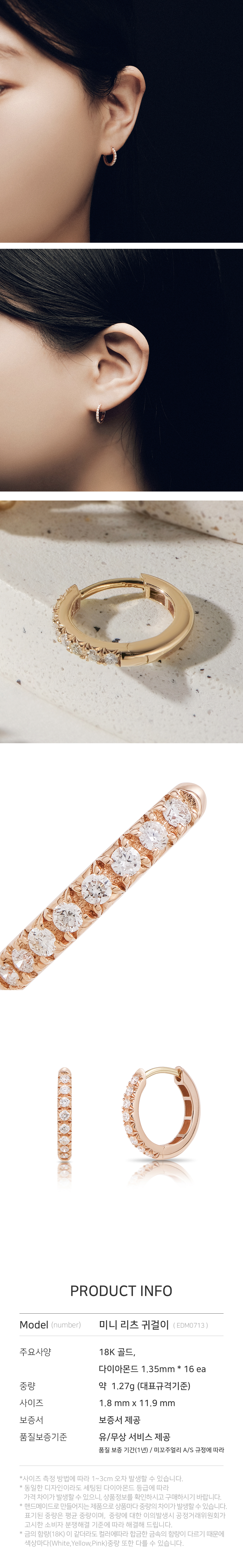 해당 상품 구입시 제작 및 출고에 영업일 기준 최대 14일이 소요됩니다. 언제나, 어디서나 동일한 가치를 인정받는 최상의 스톤만을 셀렉합니다. 미꼬의 스톤 전문가는 뉴욕, 홍콩, 인도, 일본, 벨기에 등 세계 각지에서 매일 소통하며 다이아몬드를 비롯한 스톤을 선택합니다. 3부이상 : GIA 다이아몬드 Only. 3부미만 : G/VS2/VG(별도표기 없을 시 기본등급) H/SI2/VG(일부 온라인 익스클루시브 제품, 제품명에 SI2 표기) 미꼬는 100% 핸드메이드로 외주공정이 아닌 독자적인 장인들의 공정운영으로 고객 한 분 만을 위한 주얼리입니다. 재고상품을 판매하는 것이 아닌 최상의 퀄리티를 가진 오더메이드 파인주얼리를 재공하고자하는 미꼬의 브랜드 규정입니다. 크림에서 판매되는 미꼬의 모든 주얼리는 18k Gold로 제작된 핸드메이드 파인주얼리입니다.