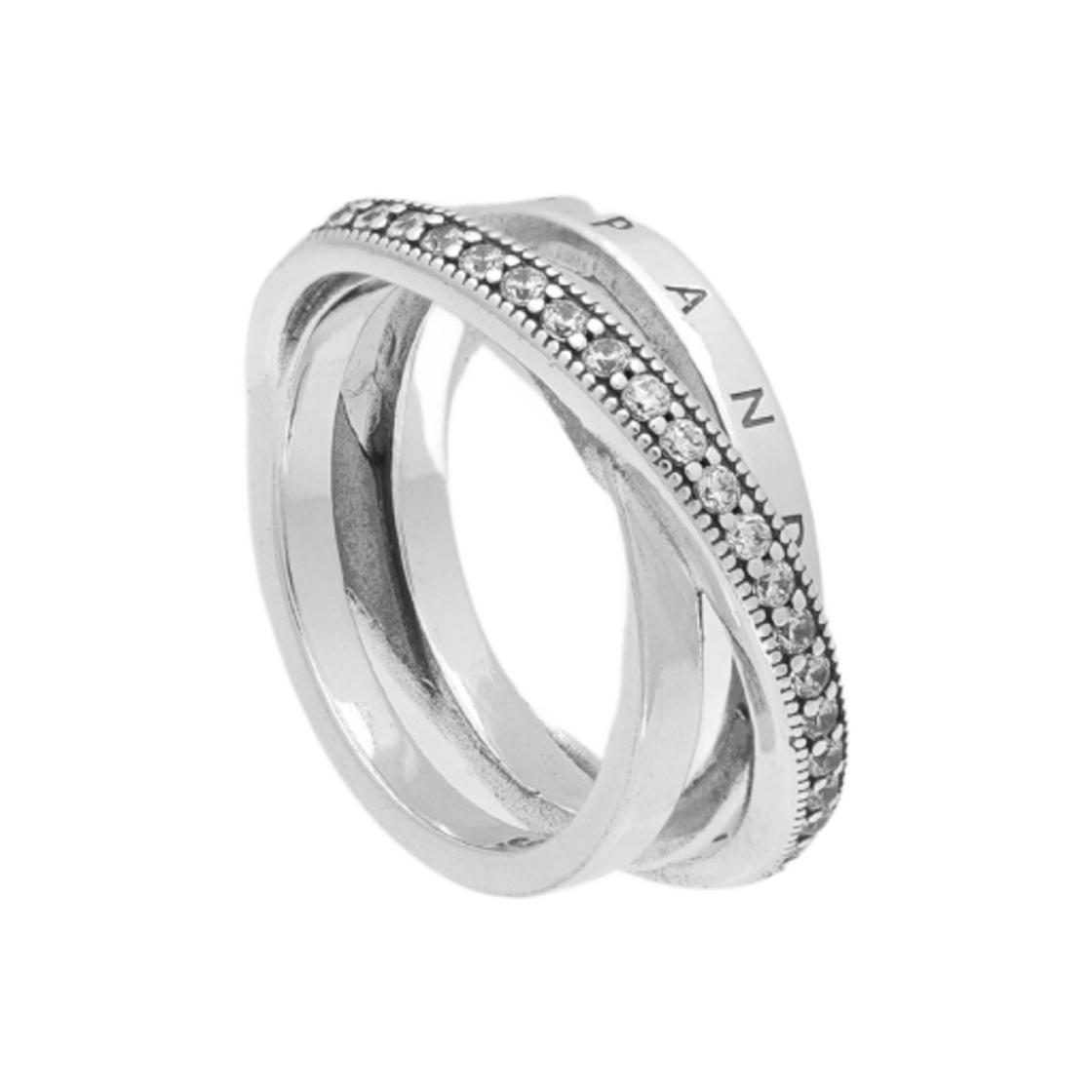 (W) Pandora Crossover Pave Triple Band Ring Sterling Silver Clear