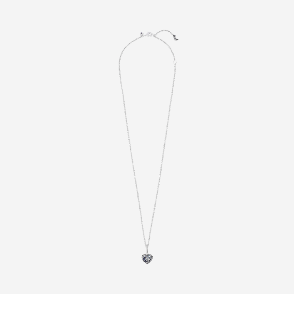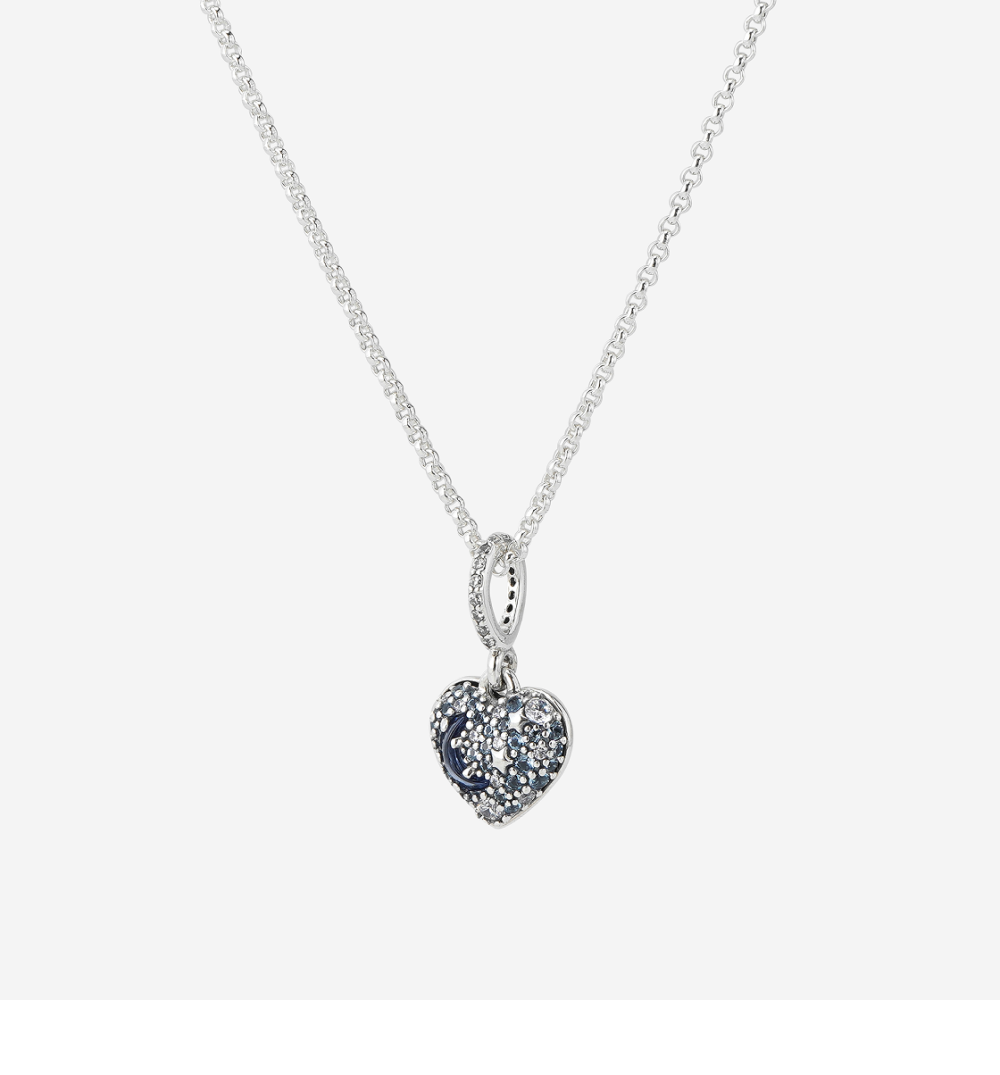 (W) Pandora Sparkling Blue Moon & Stars Heart Necklace Sterling Silver Blue