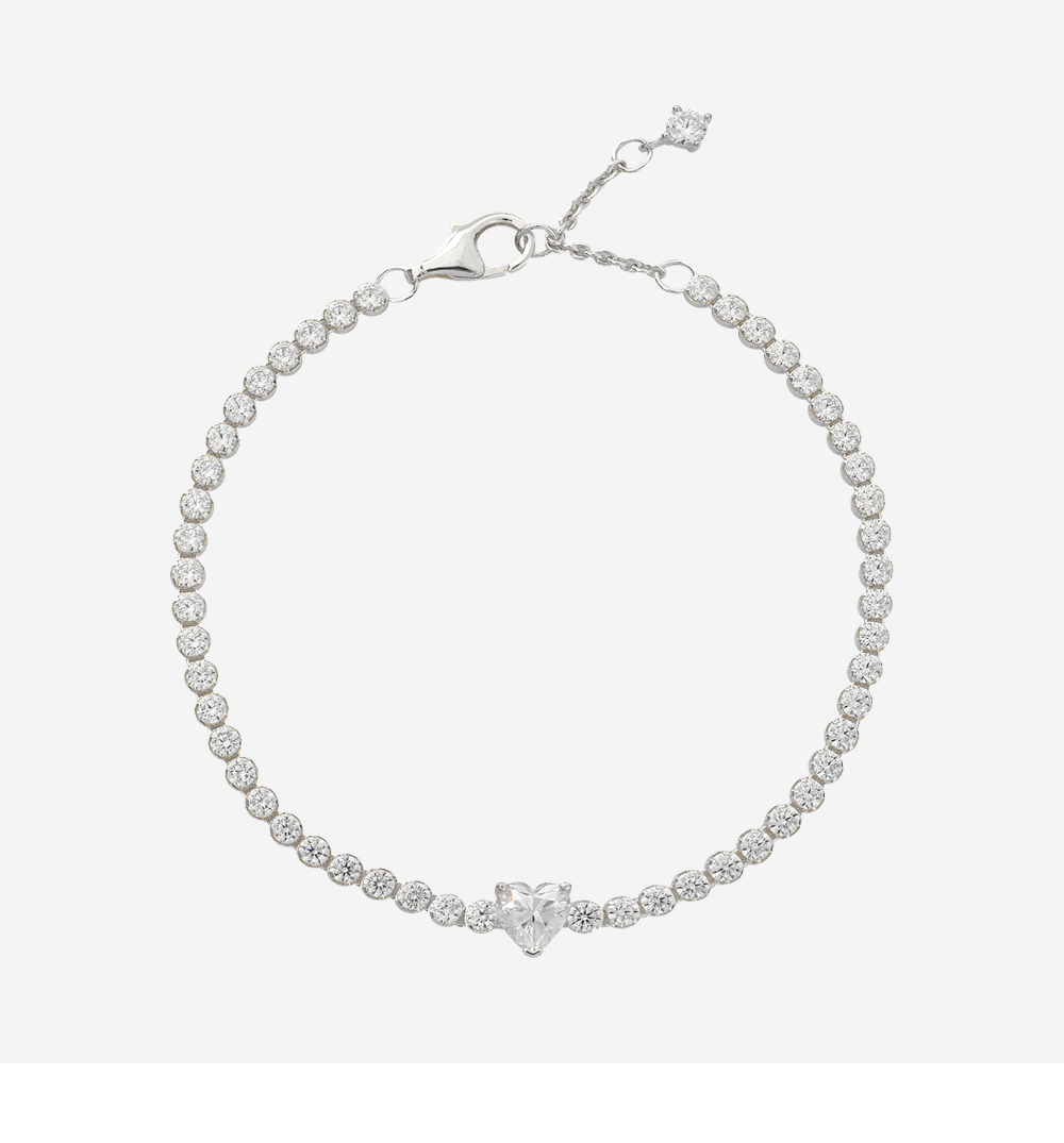(W) 판도라 스파클링 하트 테니스 브레이슬릿 스털링 실버 클리어