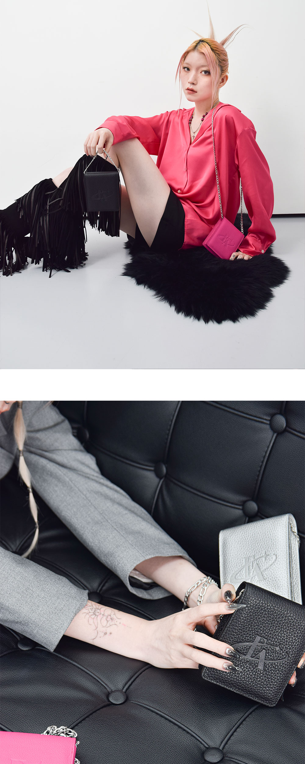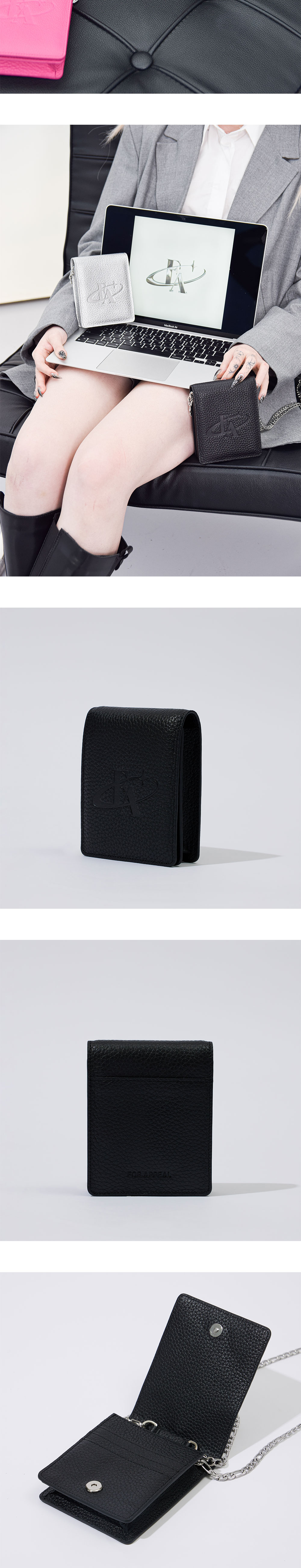 포어필의 시그니처 라인 시가렛 월렛 백 입니다. 가방의 사이즈를 최소화 시켜 간편함을 극대화 시킨 것이 특징입니다. 하이퀄리티의 스몰 패블가죽으로 자연스러운 광도와 불규칙한 패턴으로 한층 고급스러운 질감을 표현하였습니다. 두가지 기장의 써지컬스틸 체인 스트랩이 제공됩니다.작은 소지품을 담기 좋은 제품이며 별도의 카드 칸이 있어 자주 쓰는 카드 등의 수납이 용이합니다. 강한 내구성, 알러지 없음, 고급스러운 질감과 고유의 광택이 처음과 같이 오래도록 유지되는 것이 써지컬 체인의 장점입니다.
