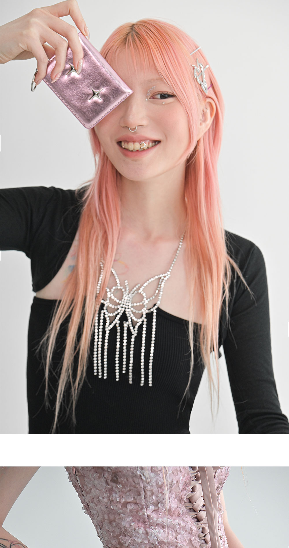 포어필 스파클 스타 카드 월렛 메탈 핑크