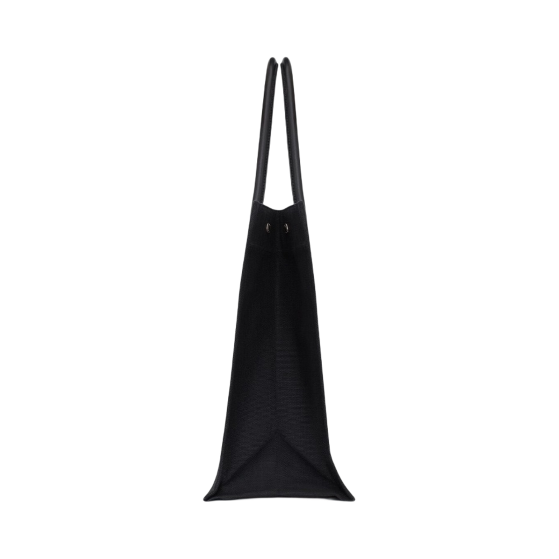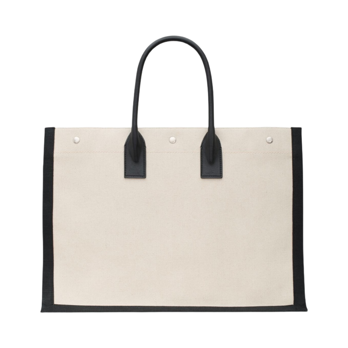 Saint Laurent Rive Gauche Large Tote Bag in Canvas and Smooth Leather Grege Black